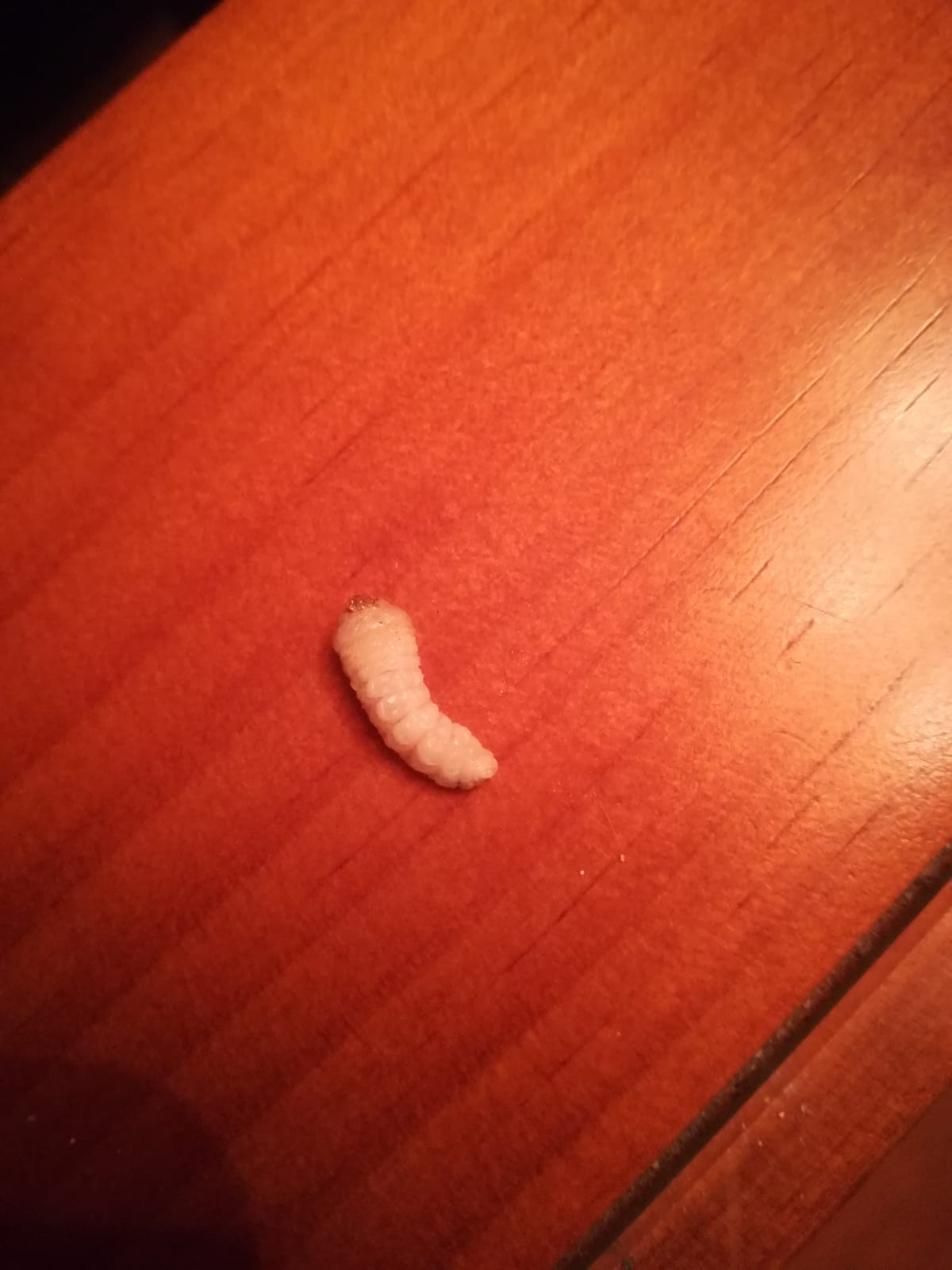 • Larvas - si el túnel es muy superficial y se colapsa la capa externa de la madera se puede ver a las larvas en el interior.